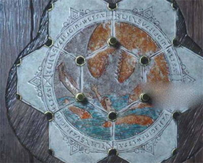 4、将拼图放在石台上,图案如下图所示,就可以完成解密了。