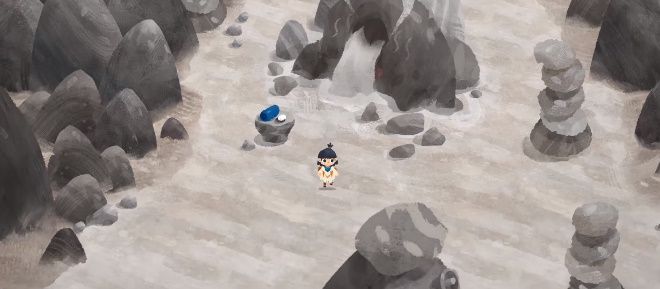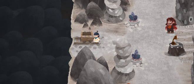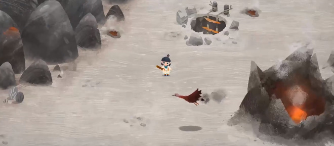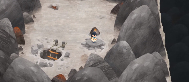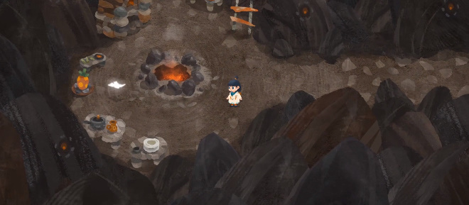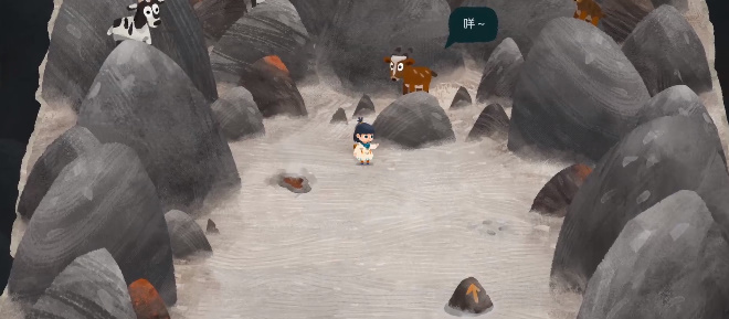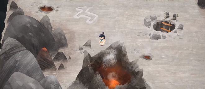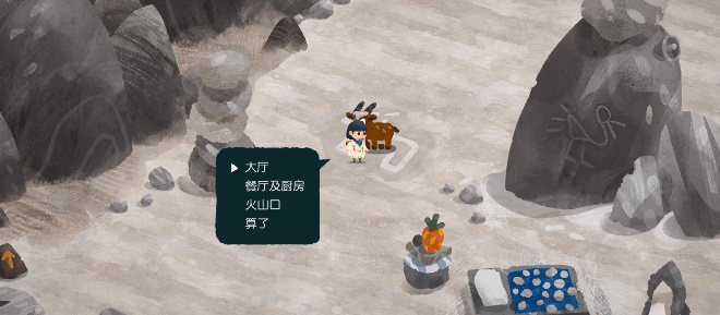 4、来到这个地方会得到一张拼图然后把他们拼起来,在这里会看到火山,然后往下面走就是厨房了;