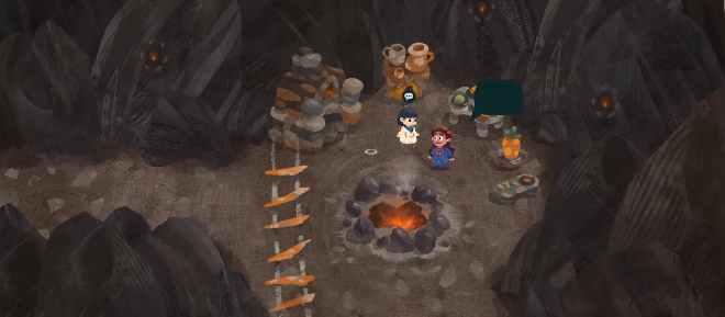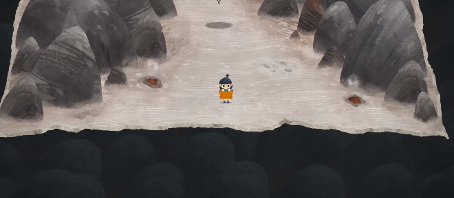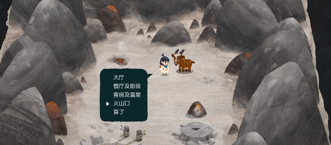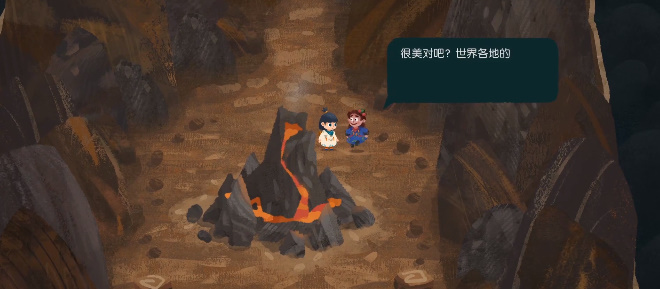 2、会看到这个小女孩,让我们去参观一下这个旅馆,让我们看下面的火山,地图在地下是不能移动的,只有在上面才可以移动哦,移动好之后下去往里面走就可以看到火山了;