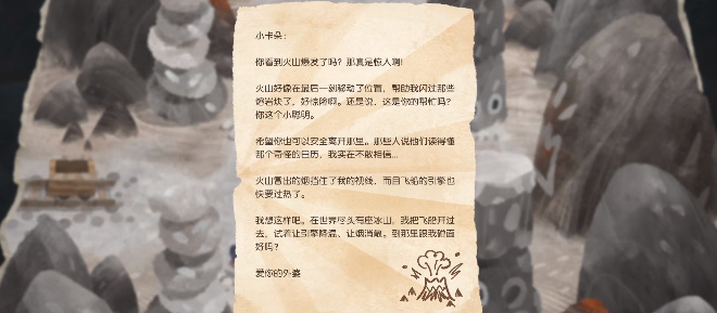 19、火山爆发之后就可以去泡温泉了,然后依次跟泡温泉的人对话,告诉我们我们的包裹有一封信我们要去看;