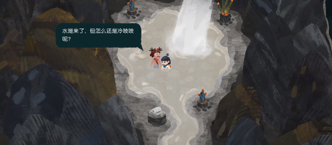 16、到达火山口之后就遇到了刚刚的小女孩,需要我们爬下去,然后她指挥我们修热水器;