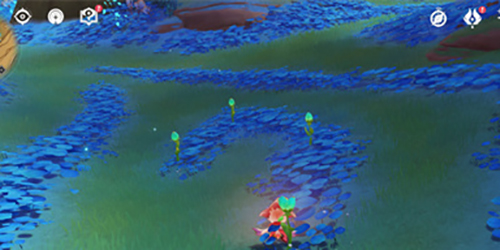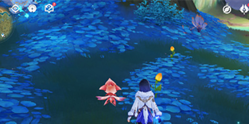 我们需要将时间调整成夜晚,我们会看到花田里出现了一些浮游,我们需要利用普攻攻击它,它就会定在原地,我们需要利用斯露莎拾取,然后再次让净觉花开放