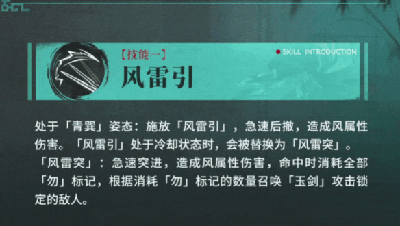 技能一:可通过普攻积攒标记再使用技能一消耗召唤玉剑;