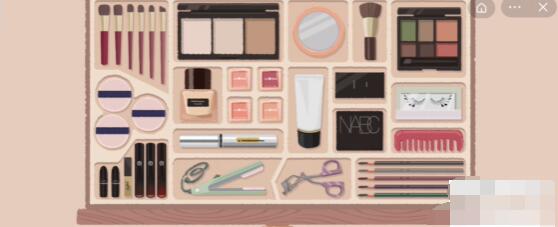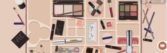1、首先我们把三色化妆粉盒放左上角第二个位置。