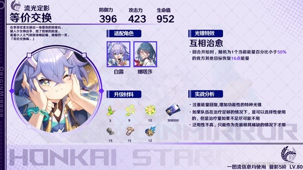 直接提升装备者的治疗量,装备者释放战技可以为全队回能,扩展了角色的功能性,