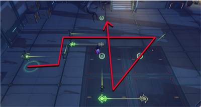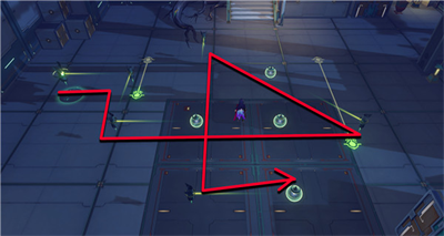 第三关:左上的激发器顺时针旋转1次;左下的激发器逆时针2次;右边中间的激发器移动位置;中上方的不需要操作;中下面的激发器移动位置,总共五个激发器,具体如图。