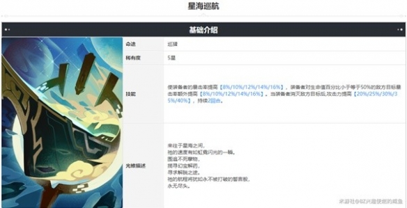 次选为4星光锥论剑,该光锥叠加层数最高5层,如果按满阶算能提高百分之80伤害,在后期遗器练度较高的情况下收益高于星海巡航,加上属于常驻效果并不需要击杀触发通用性强还是非常不错的,论剑的层数是按攻击段数来叠,希儿一个战技就可以叠4层,达成条件也比较简单,缺点就是该光锥需要抽取获得,如果不能满阶还是优先星海巡航。(图示为星海巡航及论剑)
