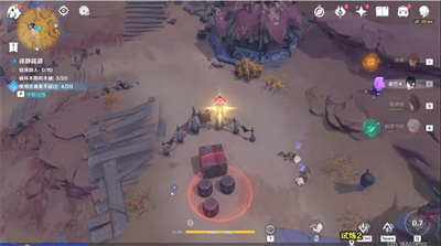 4.来到旁边依次使用触发暴雨琥珀,炸药桶,电气水晶,暴雨琥珀,电气水晶会驱赶丘丘人。