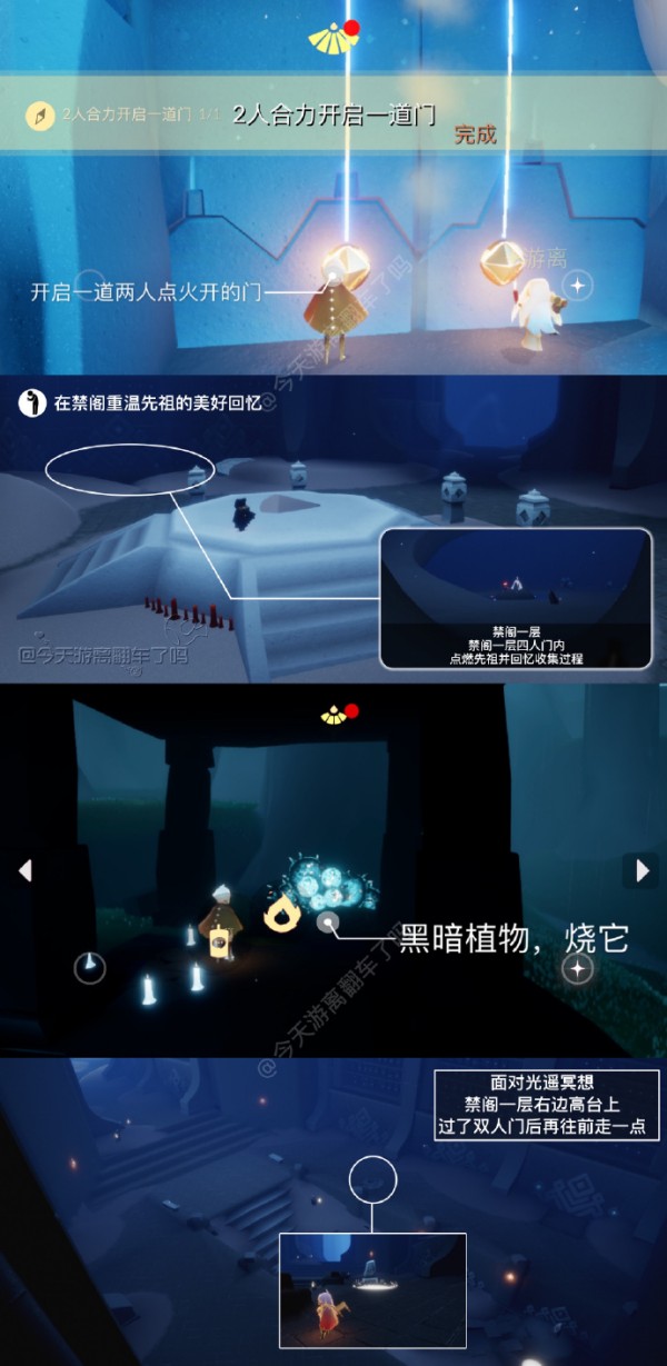 Sky光遇2023年5月17日每日任务完成攻略,Sky光遇2023年5月17日每日任务分别是二人合力开门、在禁阁重温先祖的美好回忆、净化10株黑暗植物、在禁阁神坛冥想。下面小编给大家详细介绍下,还不清楚的小伙伴们快来看看吧!