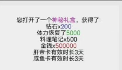 2.礼包码:熬夜做的菜不好吃