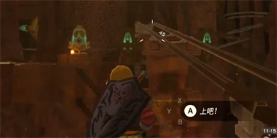 3.一直往前走,使用弓箭击中对面的机关,轨道会改变成向上。