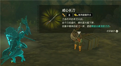 6、将箱子打开后是可以获取到【戒心长刀】,然后是继续往前;
