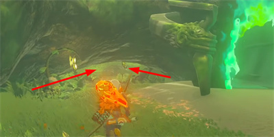 4.在附近找到下图绿色的石头,触发敌人【岩石巨人】,击败它以后就能获得绿色石头。