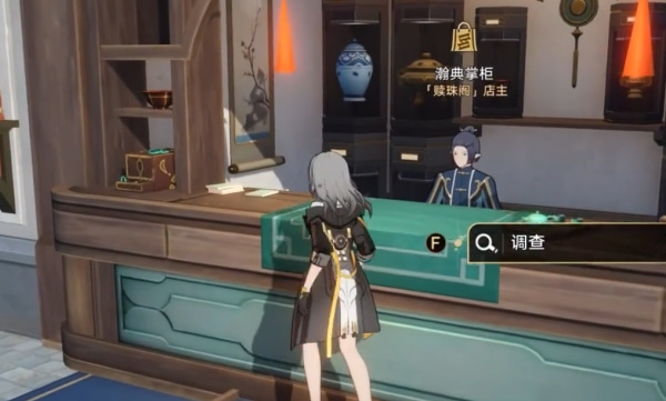 2、找到地图上的瀚典掌柜,在这个掌柜旁边有个闪亮的东西,点击调查。