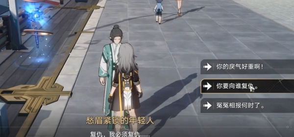 6、该附近路边上有个愁眉紧锁的年轻人,进行对话后选择你要向谁复仇。