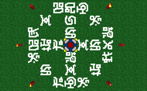 在空地上按照下图的摆法就可以获得魔王召唤仪式了,还有两根蜡烛分别是在上下的中间位置。