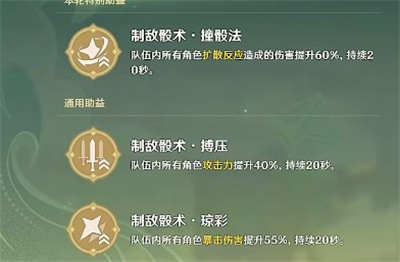 1.本次增益扩散反应伤害提升60%,攻击力提升40%,暴击伤害提升55%。