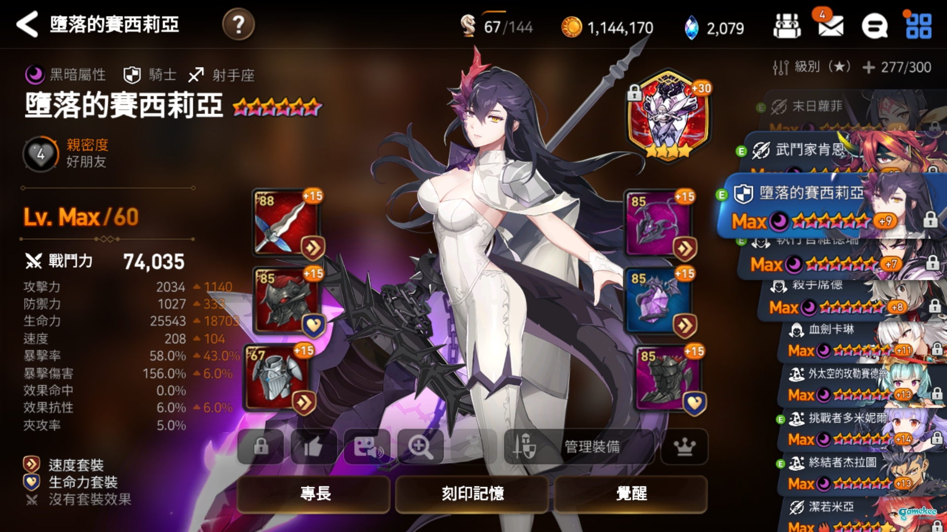 堕落的塞西莉亚作为一个前排,在属性上只需要保证生存即可,使劲堆生命值是收益最大的,因为技能效果都会提升,有她先机提供的全体护盾,遇到点杀流玩法压力也会减轻不少,因此她也是PVP玩法中的常客,但是技能效果在PVE中表现不尽人意。