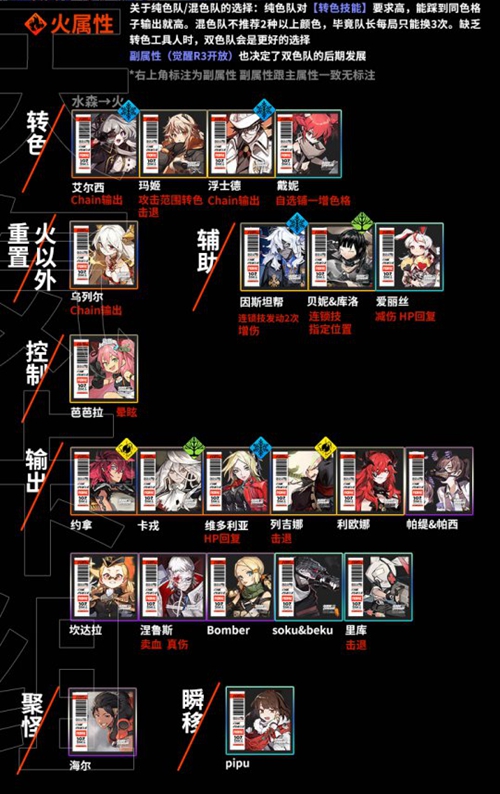 4、在游戏后期角色抽的多了之后,可以组成纯色队就是同一属性的队伍,那样可以激活组合的羁绊增加属性。