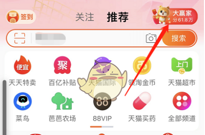 1.首先我们打开手机淘宝,首页右上角可以看得到大赢家活动,然后点击进去。