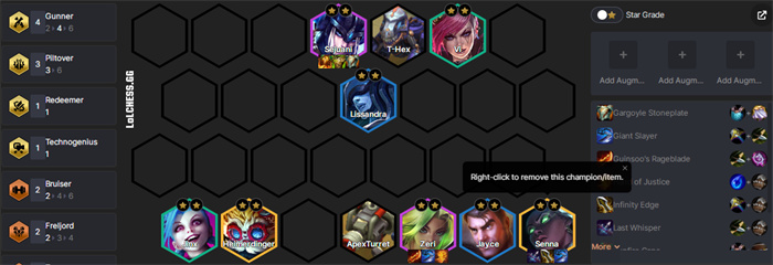 推荐理由:阵容主C为卡莎,加上六挑战者的高额伤害,只要成型,阵容上限很高,到九级可以适当换上一些九五,依据局势而定。