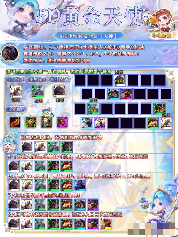 金铲铲之战s95D黄金天使阵容怎么玩?这个阵容究竟要怎么才能运营起来呢?这是在此次S9赛季中出现的一套全新阵容,它在阵容强度上可以说是相当优秀的,可以对我们的上分起到很好的作用。