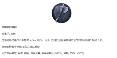 血性狂吼使暴击几率提高 +[5 – 10]%。此外, 血性狂吼也会影响附近的同伴和玩家, 持续 3 秒。