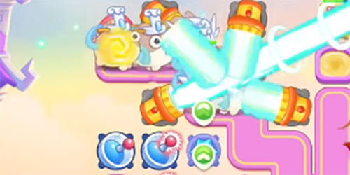4、之后来的是合体神仙,玩家沿着神仙的移动路线来升级炮塔,基本是可以锁头打神仙的,是中间的兔子不是太多,不过还是要注意一下天兵,他的血量比较厚。