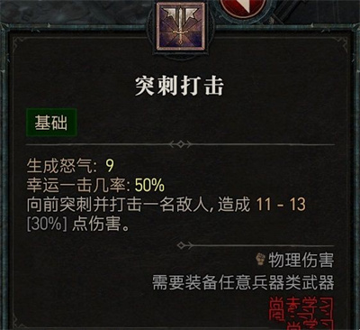 1.第一个技能树推荐突刺打击,只学一点即可,我们将利用它获得怒气,不过其下的强化天赋都建议玩家们学习一下。