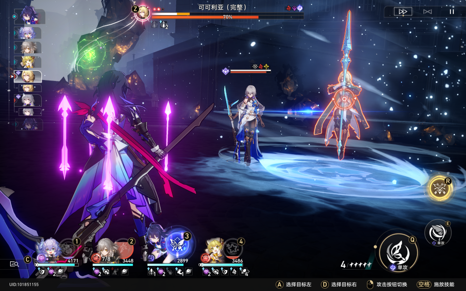 来到模拟宇宙6,可可利亚第二阶段后,会释放这招,我们队伍中多带点火/雷/量子的角色,快速破盾就行了