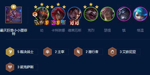 阵容组成:卡特琳娜、德莱厄斯、瑟提、格温、劫、克烈、凯尔、