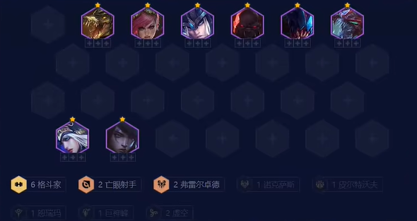 羁绊:六格斗、二亡眼射手、2弗雷尔卓德