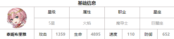 泰妮布里雅是第七史诗中的5星火焰属性魔导士角色,不少小伙伴都想知道泰妮布里雅这名角色的强度如何?泰妮布里雅的技能是什么?为了帮助小伙伴们可以全面了解这名角色,下面小编就给大家带来了泰妮布里雅的角色介绍,快来看看吧。