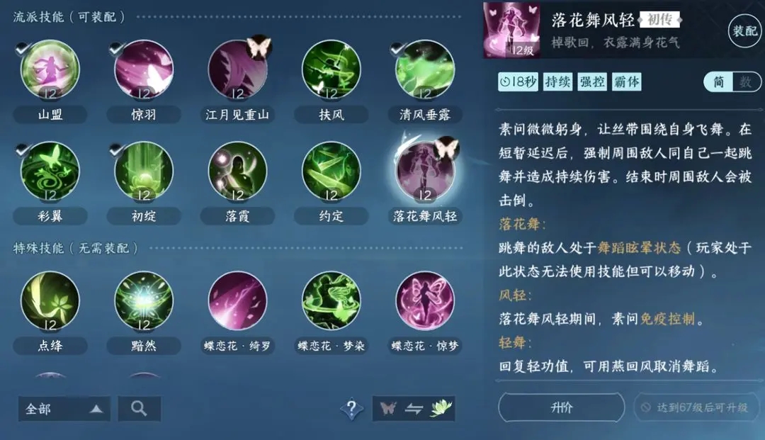 蝶恋花·梦染:集满5个蝴蝶且绿蝶较多的时候,自动释放回复周围友方气血。