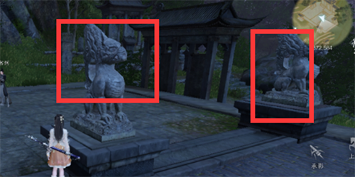 2、院中石像眼珠子掉落,有三颗流落在外,需要寻回,位置坐标分别是(616,811)、(624,909)、(770,834);完成之后会开启后山的山洞(385,548)。