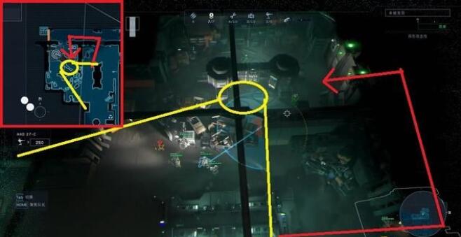 在遇到某些特定地形时,可以利用炮台近乎无限地吸引敌人注意,下图位置的炮台前方有障碍物,可以射击但无法通行,只能从一旁的走廊绕路。