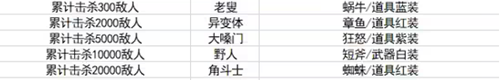 累计击杀敌人300-20000之间即可解锁老叟、异变体、大嗓门、野人、角斗士