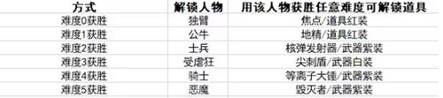 通过难度0-5即可解锁独臂、公牛、士兵、受虐狂、骑士、恶魔