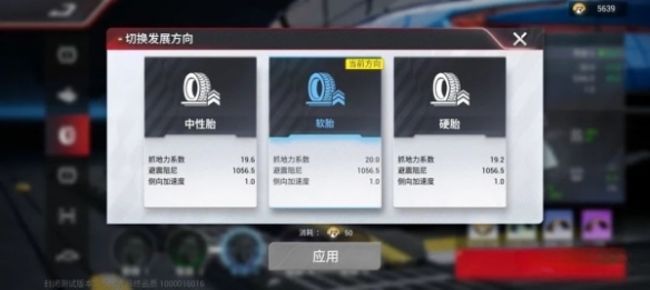 1、赛车的轮胎选择也是比较重要的一环,选择不同属性的轮胎来提速,这样在多样的地图上各种轮胎的特性容易表现出来。