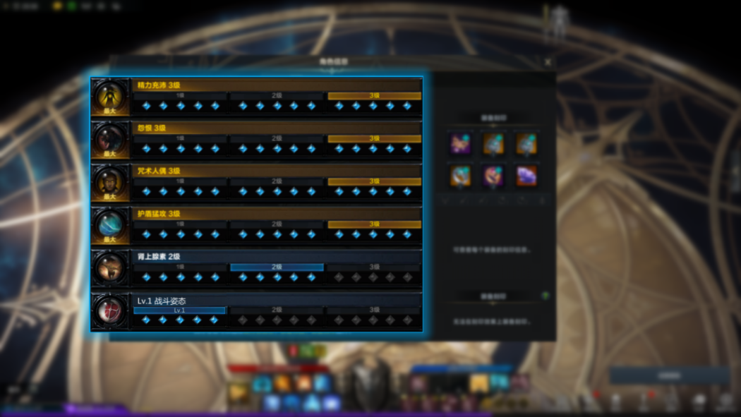 1-5条优先级推荐:战斗态势1、护盾猛攻、精力充沛、肾上腺素2、咒术人偶、怨恨。
