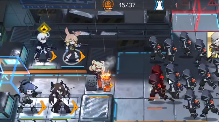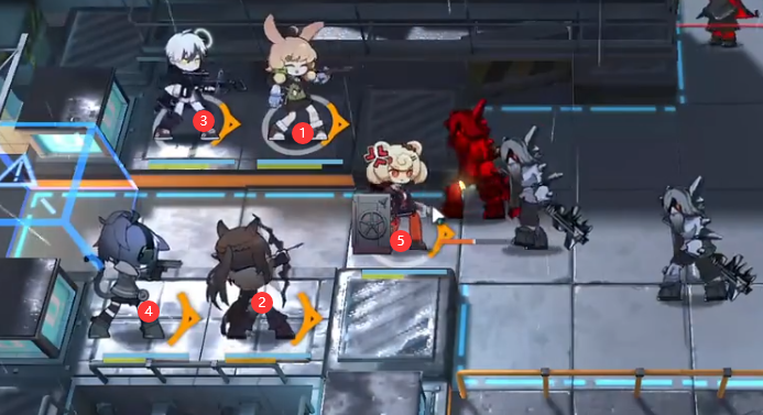 1.如下图所示顺序布置干员。所有狙击干员都向右,最后部署古米。