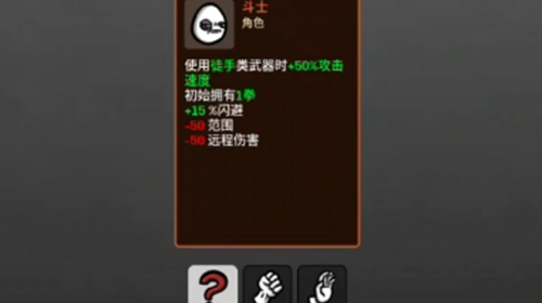 斗士的武器只能选择拳,它的技能机制能提供拳头伤害以及闪避率,后期一定要提高拳的等级。