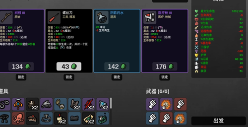 道具上前期先拿一些有用的,比如加生命窃取和收获的道具,能达到快速刷怪和获得稀有道具的效果,后期只要注意不要被敌人包围利用好走位就会很轻松通关难度5了。