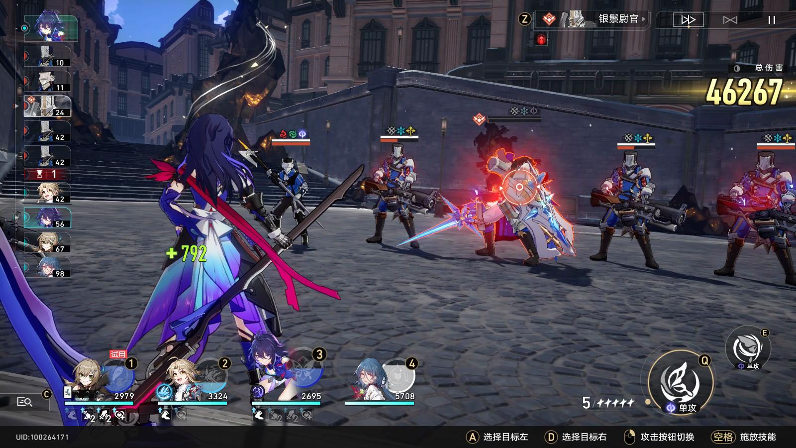 青雀无限使用战技,攻击中间的银鬃炮手