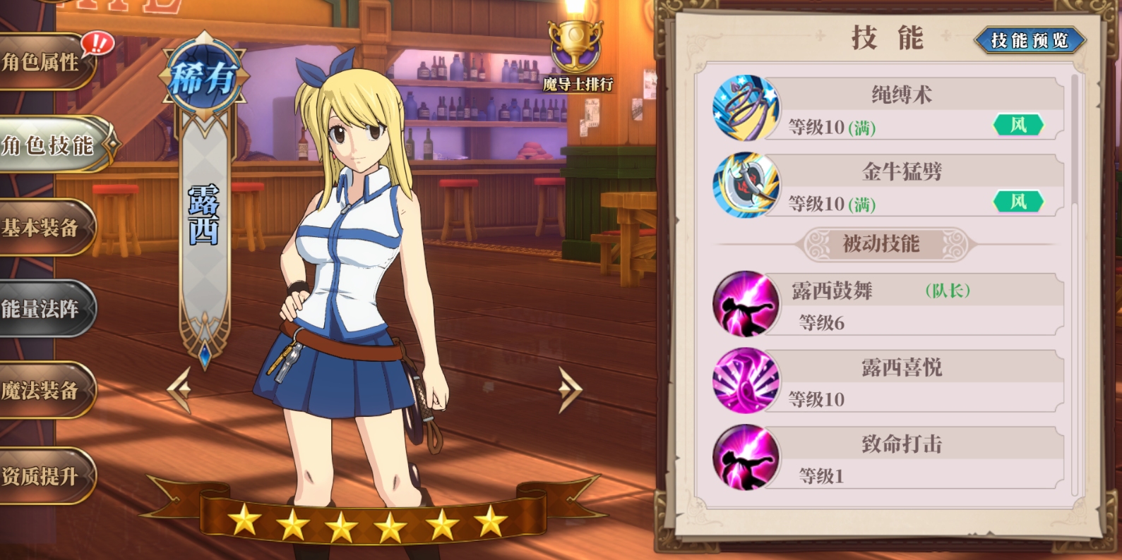 首先还是老规矩,先介绍一下露西的属性。露西的属性比较特殊,属于全能型的魔导士,不存在被克制的机制。