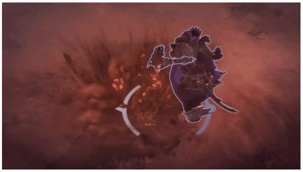P2-狂暴状态才会使用,乌尼尔强大的技能之一。在头前创造一个火焰球体并向后投掷以攻击后方的敌人,球体落地爆炸。如果你被这个技能命中,你会受到很大的伤害,这个技能需要远离头背区域,侧面输出。处理方法:远离头前背后。