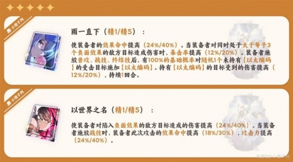 唯一缺陷是对「瓦尔特」辅助能力提升不足,仅有那可怜的一点效果命中提高,其余的均是提升输出能力的。