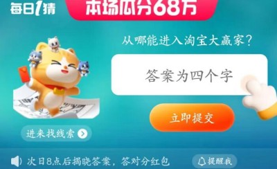 《淘宝》618活动目前已经开始了,官方也是推出了每日一猜的瓜分100万奖池活动,每天玩家们都可以通过答题瓜分百万红包,今天小编给大家带来的是淘宝大赢家2023年6月21日的问题“从哪能进入淘宝大赢家?”这道题目的答案是什么呢,让我们一起来看看吧。
