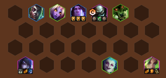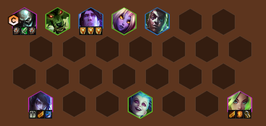 2-1拉4,2-5拉5,3-2拉6,4-1拉7优先找到1星厄加特搭配4祖安3巨神,后续直接拉8人口找到全员2星