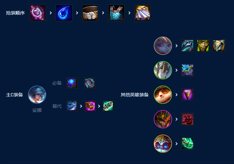 装备琴女的蓝buff可以替换青龙刀。鬼书必备第三件可以不给。等德玛给的光明装备就可以。其次就是波比的前排肉装一定要拿。